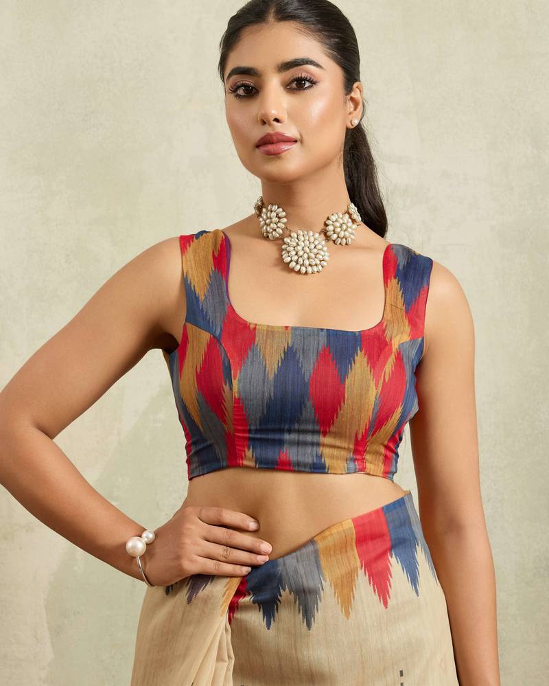| Product Name | Cream Ikat Cotton Silk Ethnic Causal Wear Saree With Blouse | |