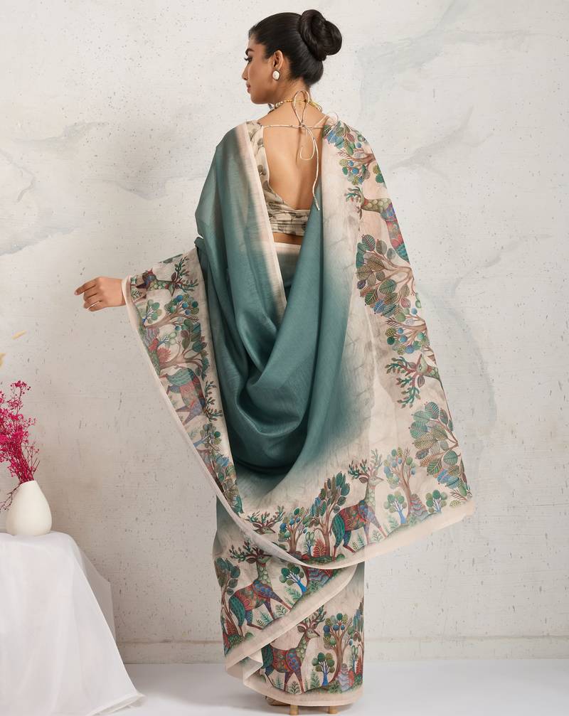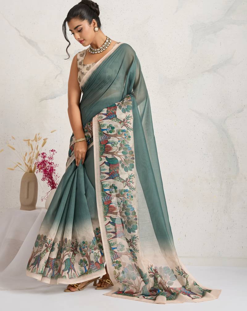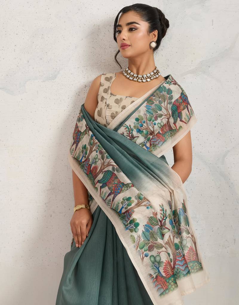 | Product Name | Green Kalamkari Print Chiffon Ethnic Causal Waer Saree With Blouse | |
