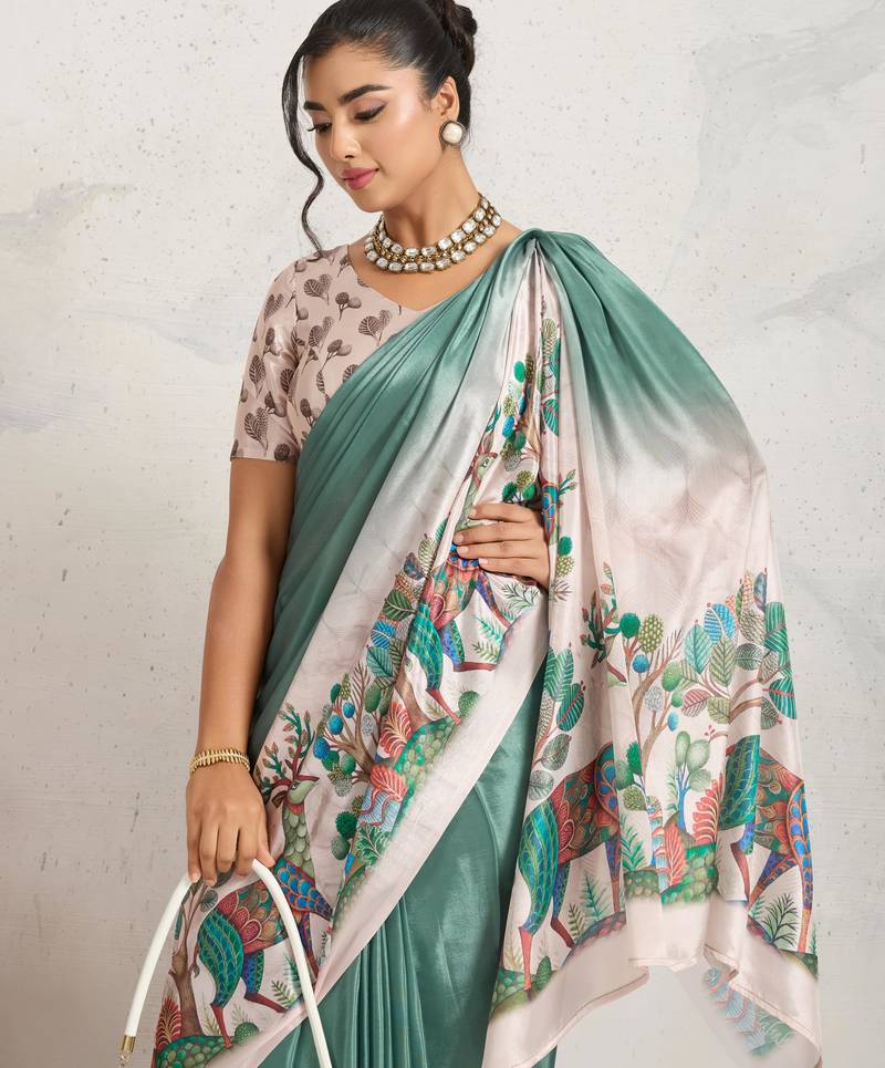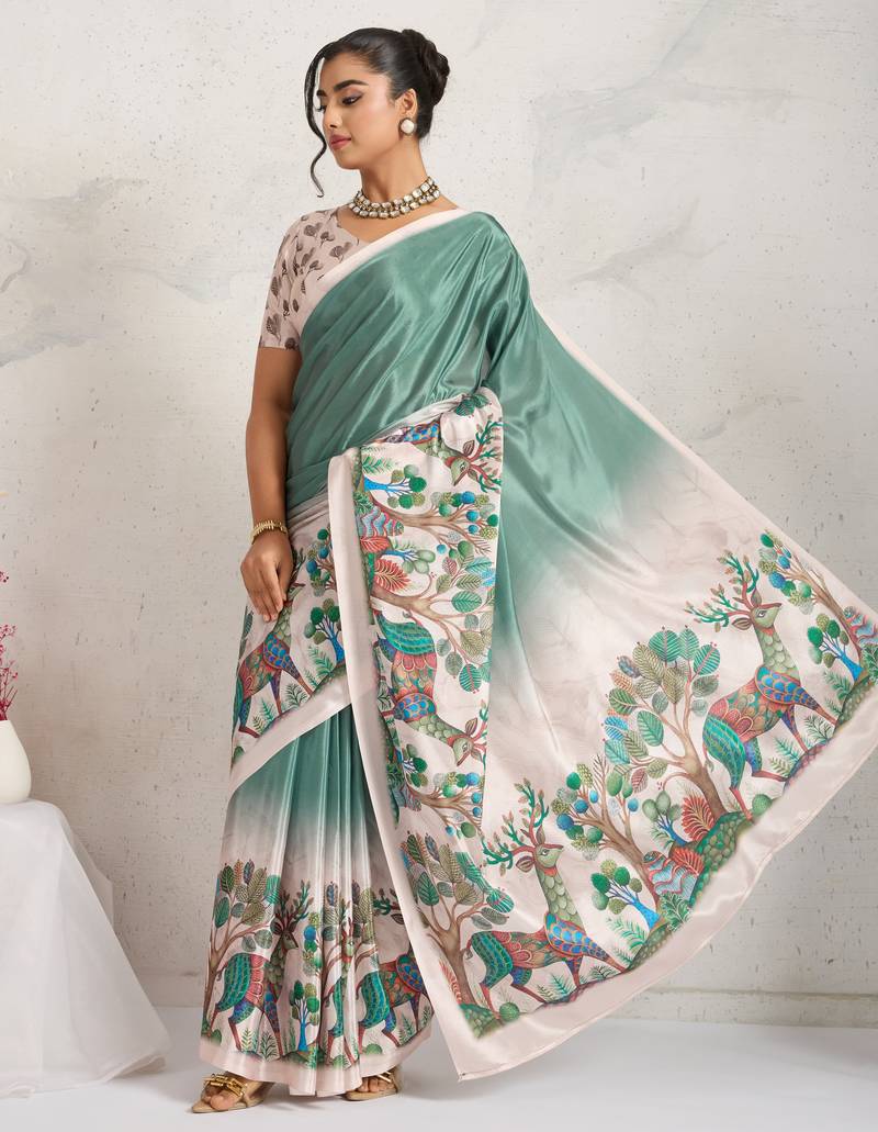 | Product Name | Green Kalamkari Print Chiffon Ethnic Causal Wear Saree With Blouse | |
