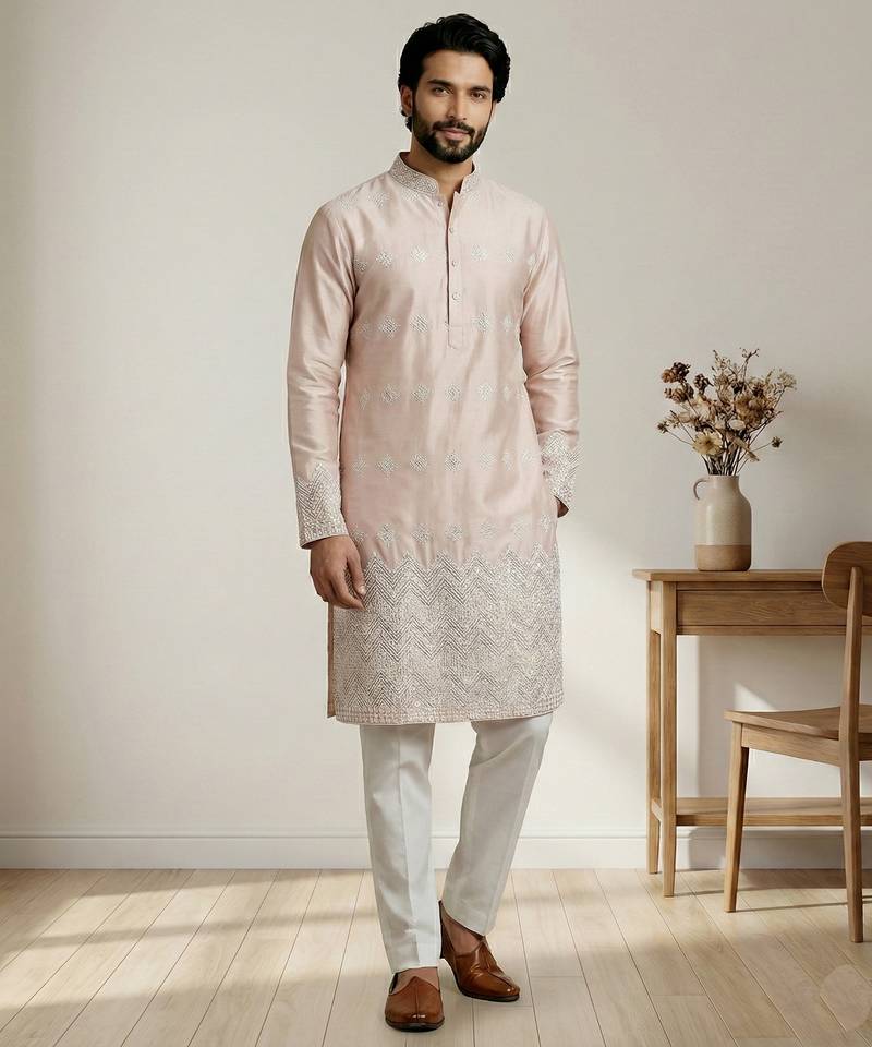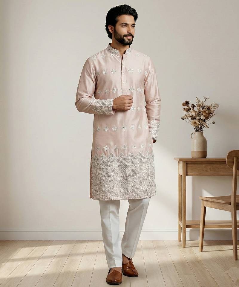 | Product Name | Peach Designer Festive Wear Satin Kurta Pajama | |