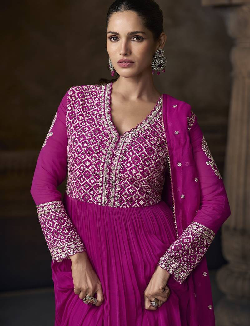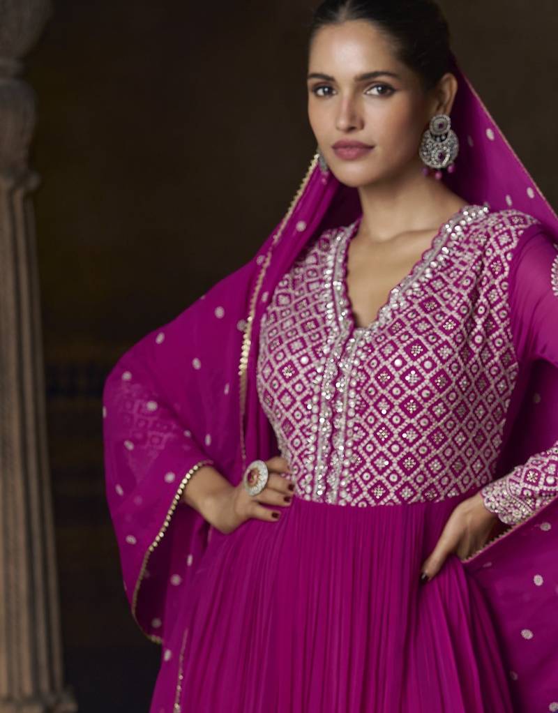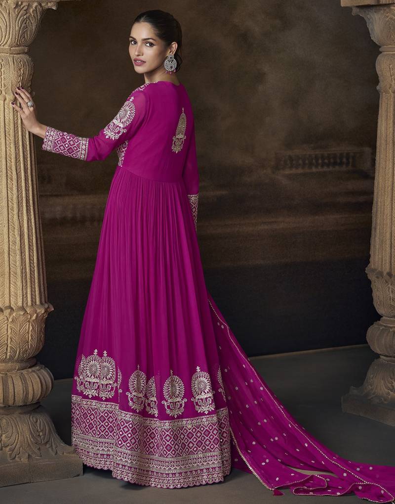 | Product Name | Magenta Embroidered Georgette Semi Sttich Wedding Wear Gown Style With Dupatta | |