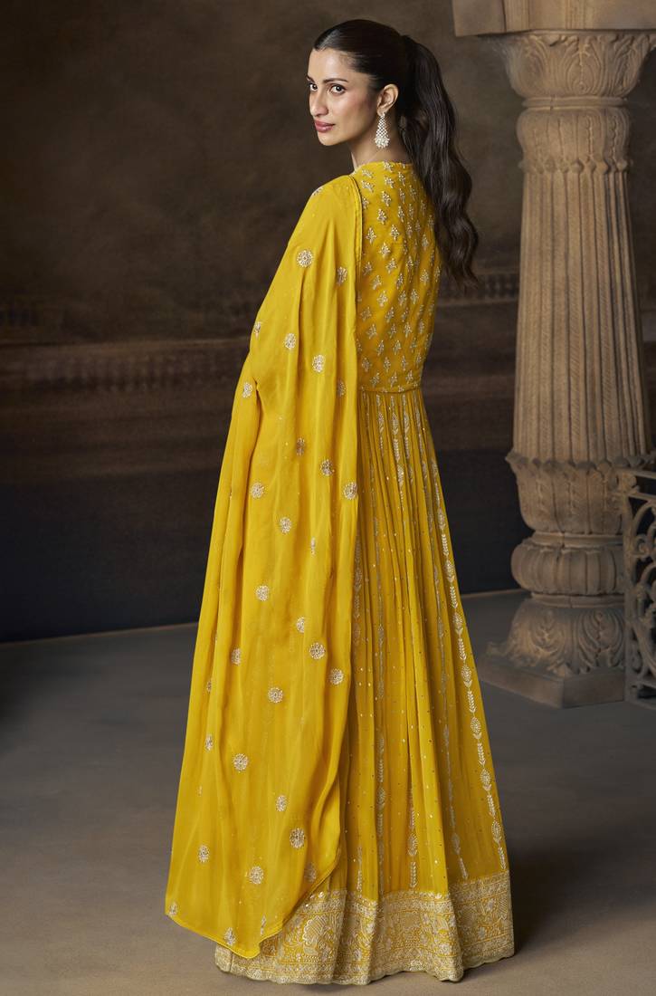 | Product Name | Yellow Embroidered Georgette Semi Sttich Wedding Wear Gown Style With Dupatta | |