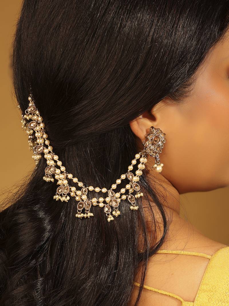 | Product Name | 3 String White Kundan Stone Pearl Antique Gold Plated Set Of 2 Ear Chain (Kaanchain) For Women | |