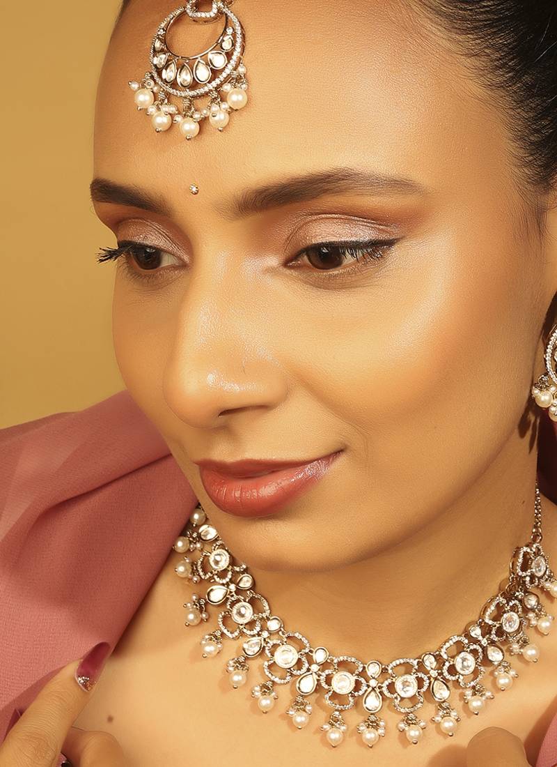 | Product Name | Round & Oval Shape White Kundan Stone Gold Plated Brass Choker Necklace Set With Maang Tikkka For Women | |