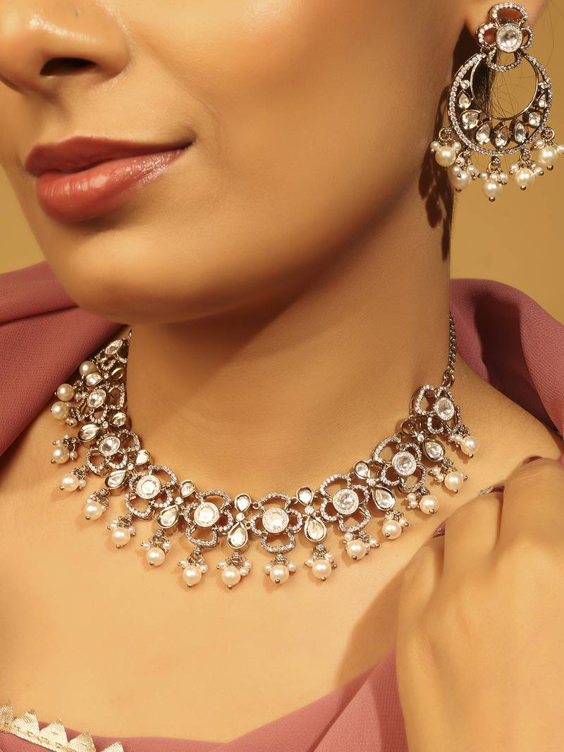 | Product Description | Stylish Round And Oval Shape White Uncut Kundan Stone Antique Gold Plated Choker Necklace Set With Maang Tikkka For Women And Girls Is Made Of Brass Will Give You Astonishing Charm And Super Comfort. Discover Our Wide Jewellery Collection — Stunning Kundan Sets, Bridal Wedding Jewellery, Silver Oxidised Earrings, Vibrant Meenakari Pieces, Divine Temple Sets, And Elegant Kundan Maang Tikkas With Earrings. Plus, Explore Our Unique Home & Décor Picks Like Sindoor Dibbis, Idols, And More! |