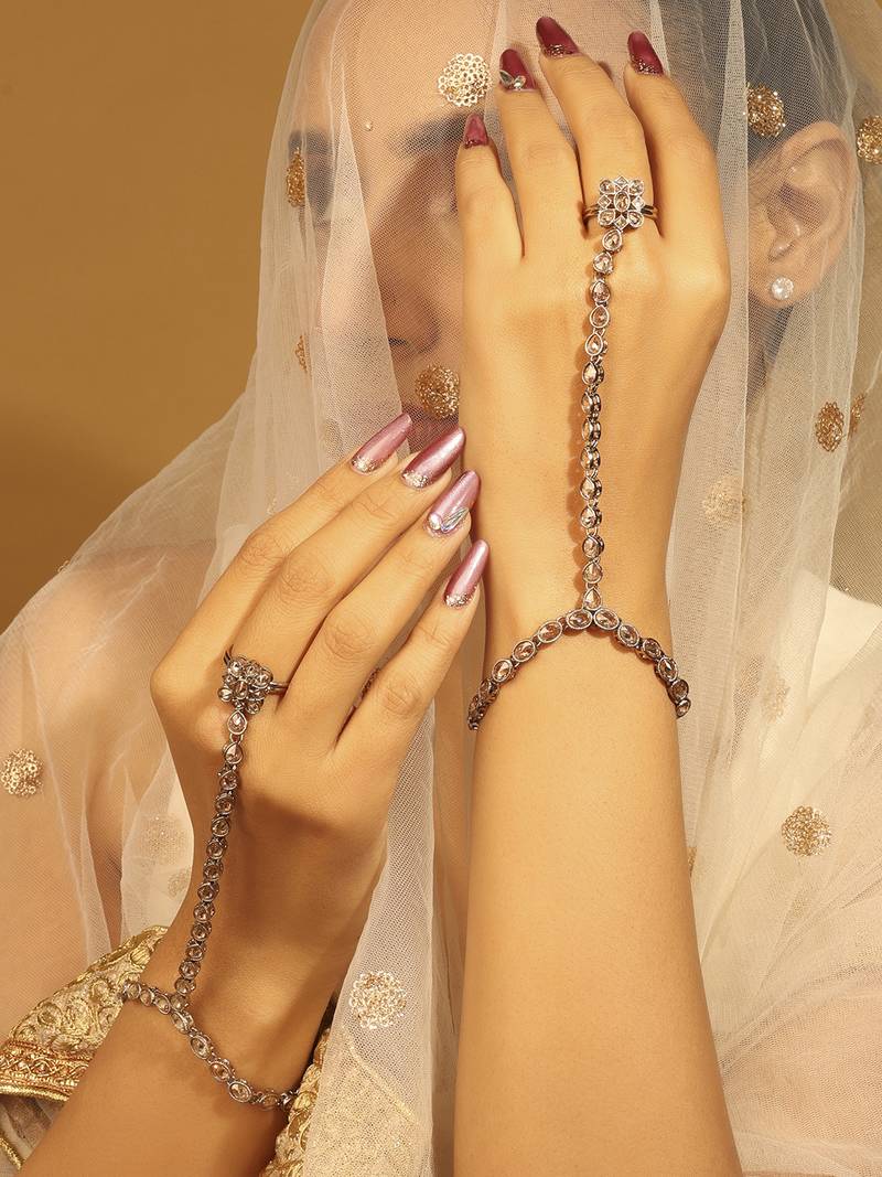 | Product Description | Your Ethnic Look Is Incomplete Without A Perfect Haath Panja. Here Is The Finest Sparkling Hathphool/Panja Of Latest Style And Shades To Match Your Personality. It Comes With Very Fashionable And Detailed Sparkling Design To Wear In Parties, Weddings, And Special Occasions. |