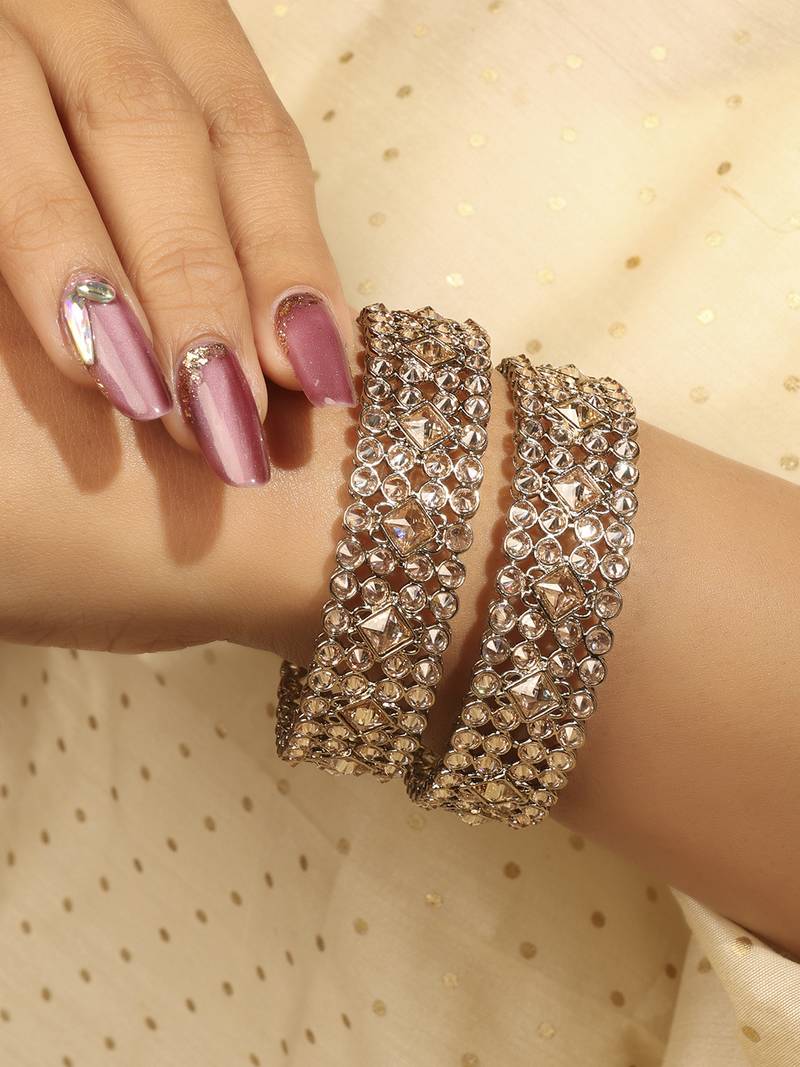 | Product Name | Traditional Dazzling Round And Rectangle Gold Plated Brown Stone Set Of 2 Bangles For Women | |