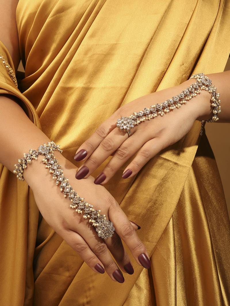 | Product Description | Your Ethnic Look Is Incomplete Without A Perfect Haath Panja. Here Is The Finest Sparkling Hathphool/Panja Of Latest Style And Shades To Match Your Personality. It Comes With Very Fashionable And Detailed Sparkling Design To Wear In Parties, Weddings, And Special Occasions. |