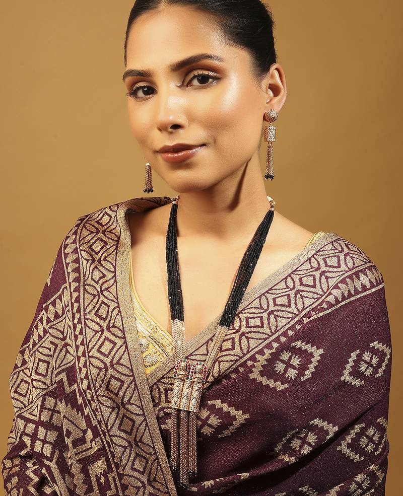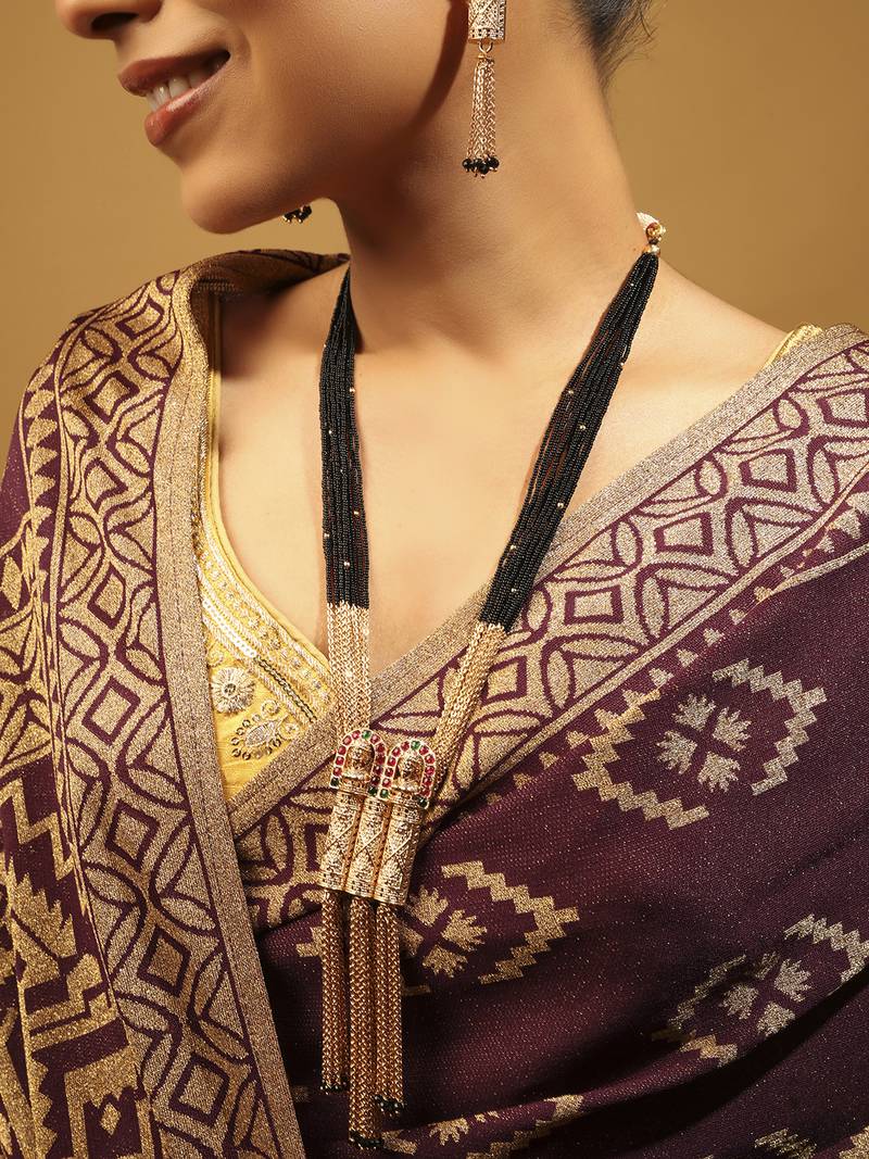 | Product Name | Traditional Temple Chain Lariat Black Bead Gold Plated Long Bead Chain Mangalsutra Set For Women | |