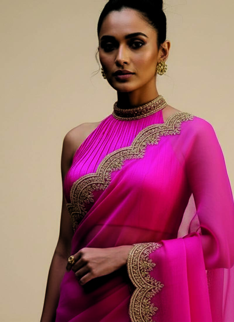 | Product Description | This Pink Embroidered Organza Saree Set Exudes Delicate Elegance With Its Sheer Texture And Graceful Drape. The Lightweight Organza Fabric Creates A Soft, Flowy Silhouette, While Intricate Embroidery Enhances Its Festive Charm. Paired With A Coordinated Blouse, It Is Perfect For Weddings, Celebrations, And Elegant Daytime Occasions.