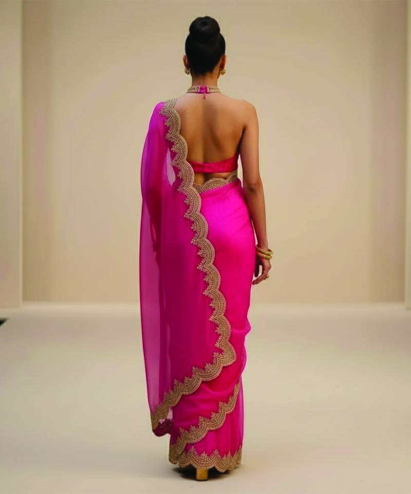 | • | Saree | : | Color- Pink / Fabric- Organza |
