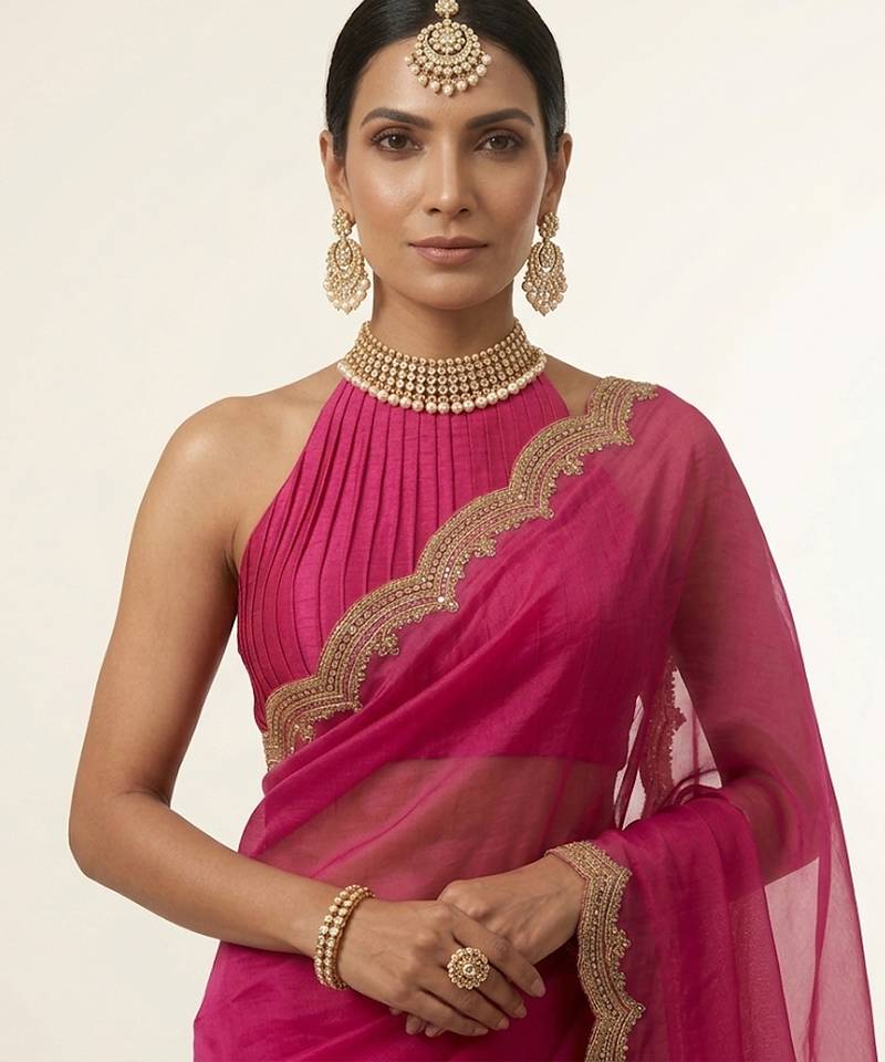 | Product Name | Pink Embroidered Silk Saree Set | |