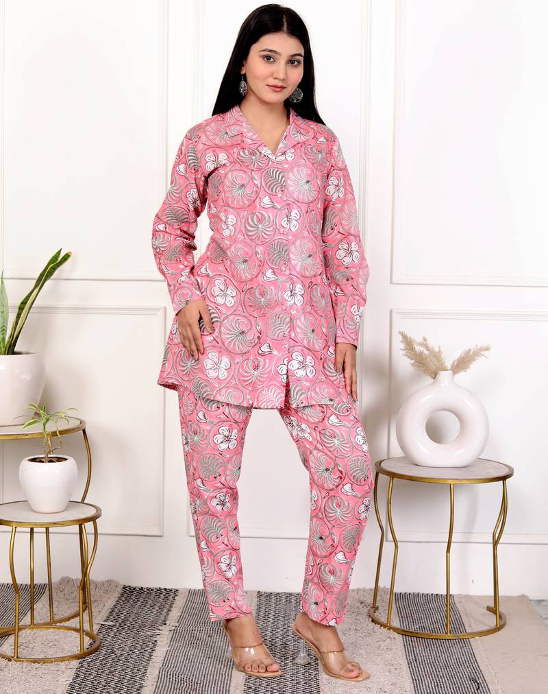 | Product Name | Pink Hand Block Printed Cotton Co Ord Set | |