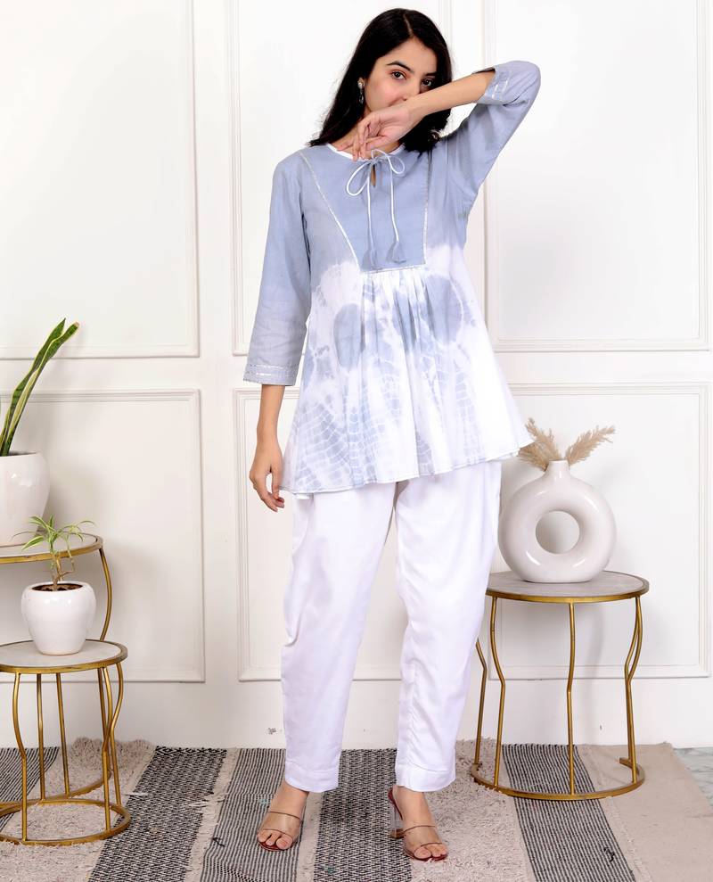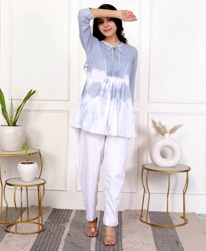 | Product Name | Sky Blue Tie & Dye White Cotton Co Ord Set | |