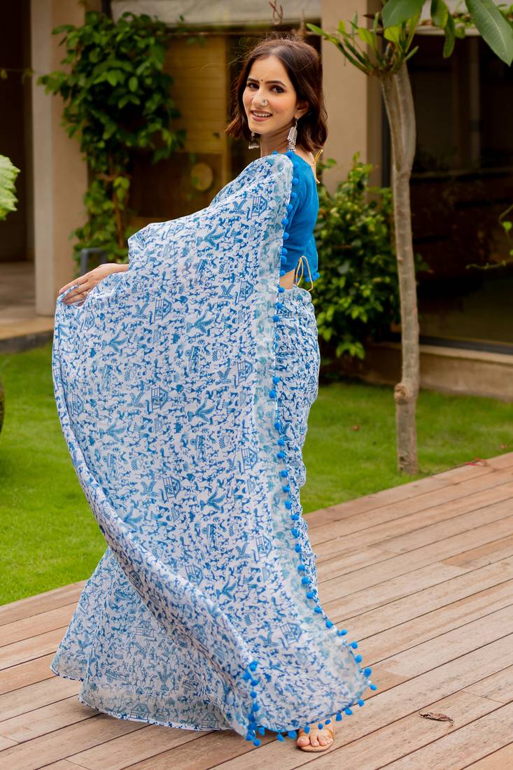 | Product Name | White Cotton Blend Warli Print Pom Pom Lace Border Saree With Unstiched Blouse Piece | |