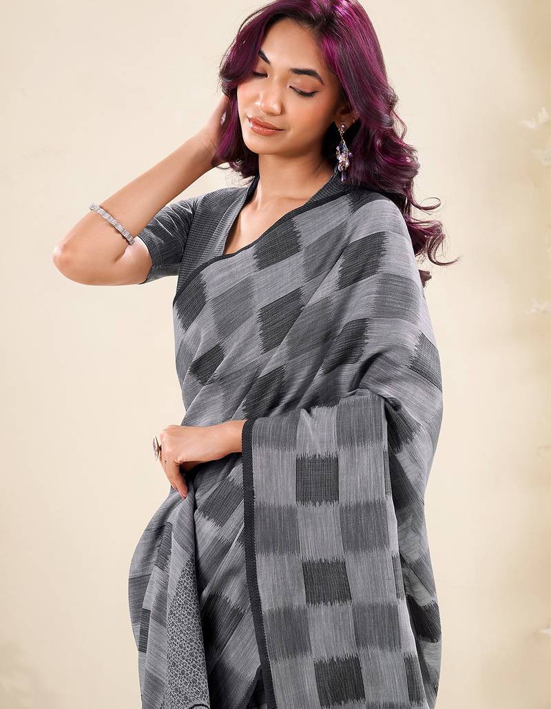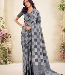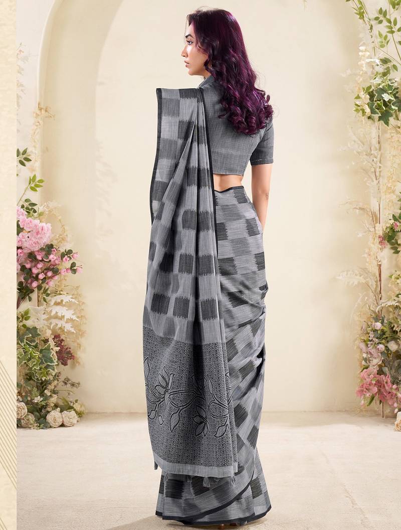 | Product Name | Women Grey & Black Checked Linen Saree With Floral Pallu | |