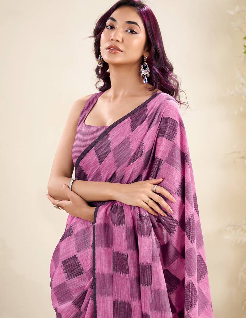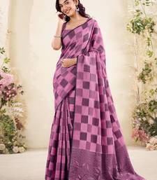 | Product Name | Women Pink & Purple Checked Linen Saree With Floral Pallu | |