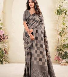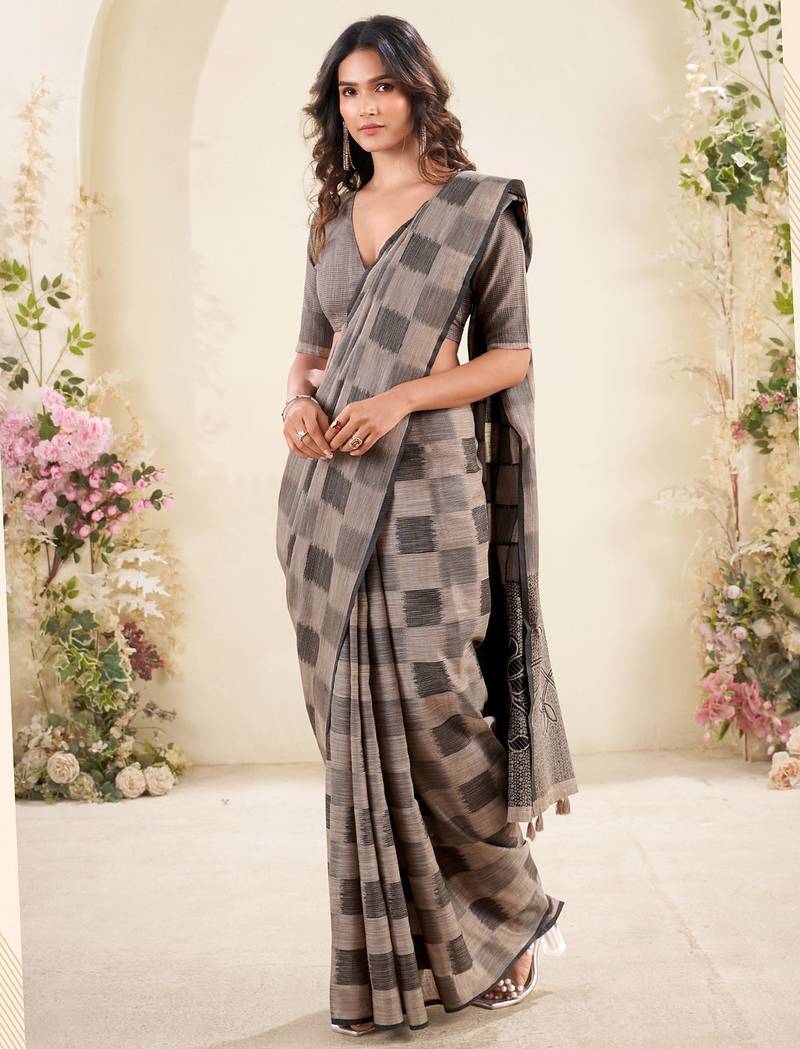 | Product Name | Women Taupe Brown Checked Linen Saree With Floral Pallu | |