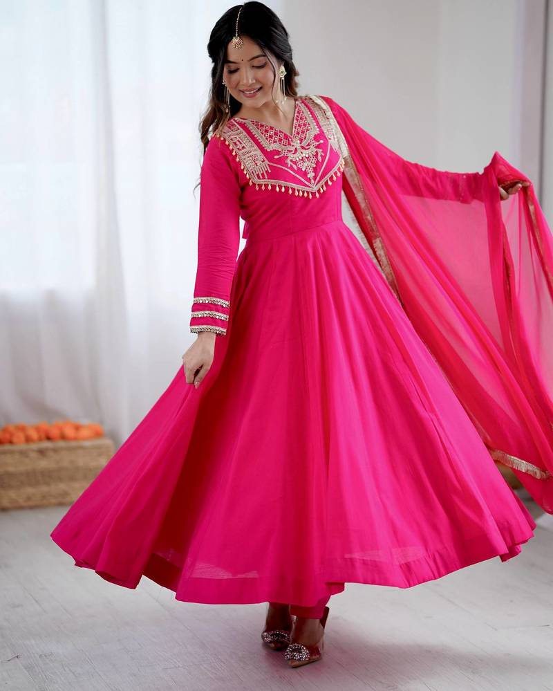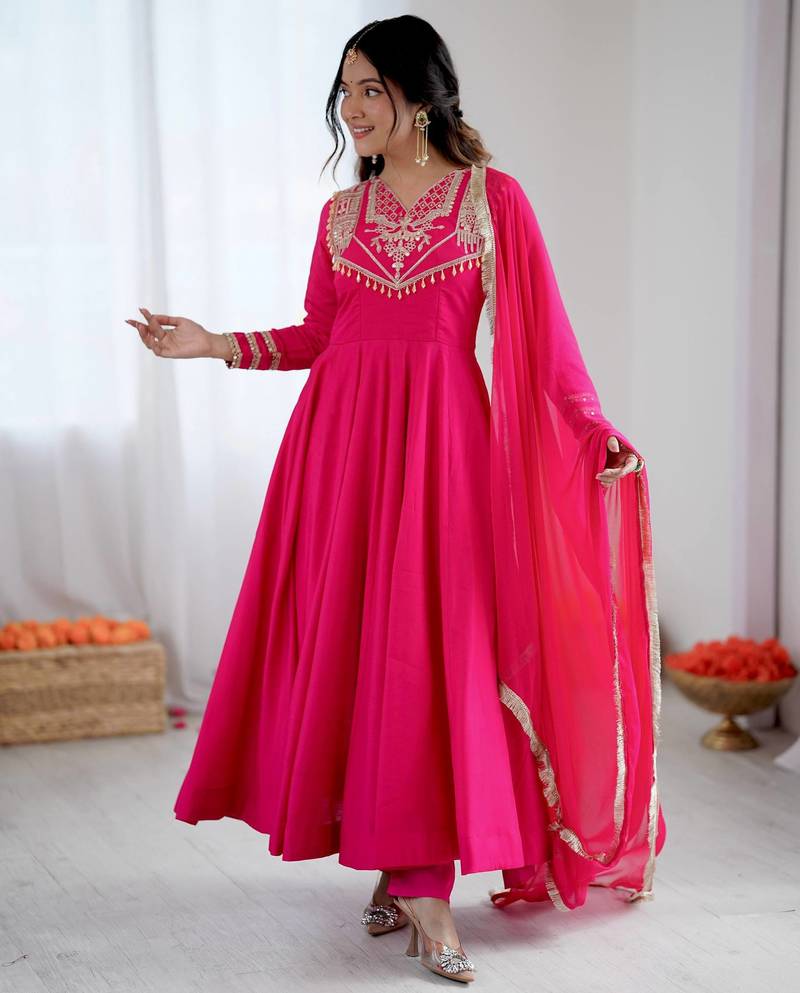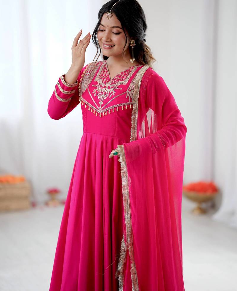 | Product Name | Pink Color Roman Silk Embroidery Work Party Wear Gown | |