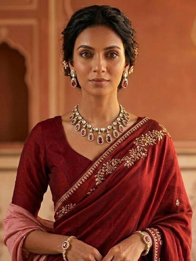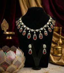| Product Description | Add A Touch Of Regal Elegance To Your Ethnic Ensemble With This Beautifully Designed Traditional Necklace Set. The Necklace Features Intricate Kundan Stone Work Arranged In A Graceful Pattern, Highlighted With Striking Red Stone Drop Accents That Enhance Its Luxurious Appeal. Each Element Is Crafted With Fine Detailing To Create A Rich And Sophisticated Look. The Matching Drop Earrings Perfectly Complement The Necklace, Completing The Elegant Design. Ideal For Weddings, Festive Occasions, And Traditional Celebrations, This Stunning Jewelry Set Pairs Beautifully With Sarees, Lehengas, And Other Ethnic Outfits, Making You Stand Out With Timeless Charm. |