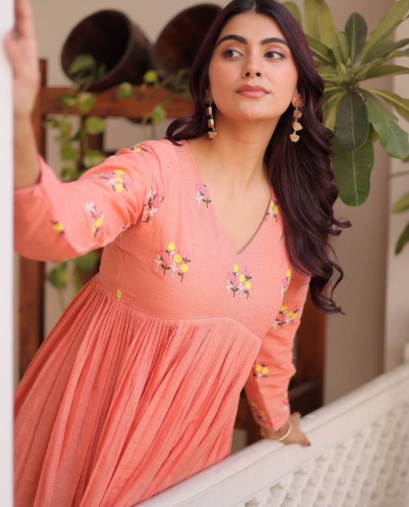 The Soft Peach Tone With Subtle Floral Embroidery Makes This Outfit Ideal For Casual Outings, Daytime Events, Festive Gatherings, And Summer Wear.