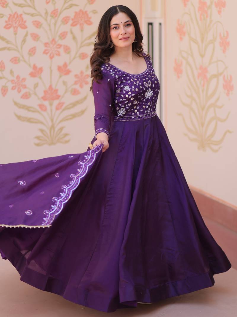 | Product Name | Charming Purple Bead Work Crushed Evening Wear Gown With Dupatta | |