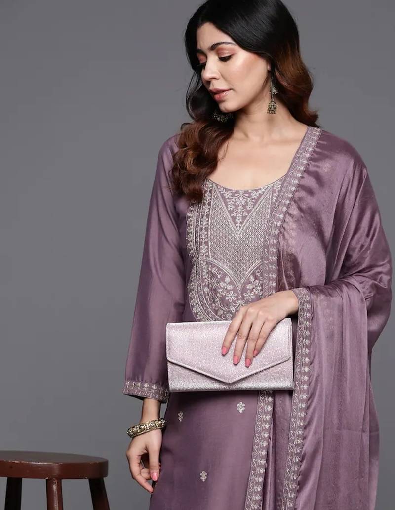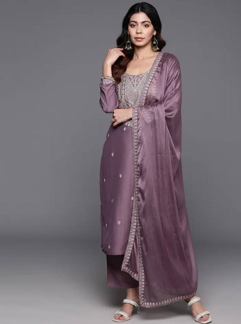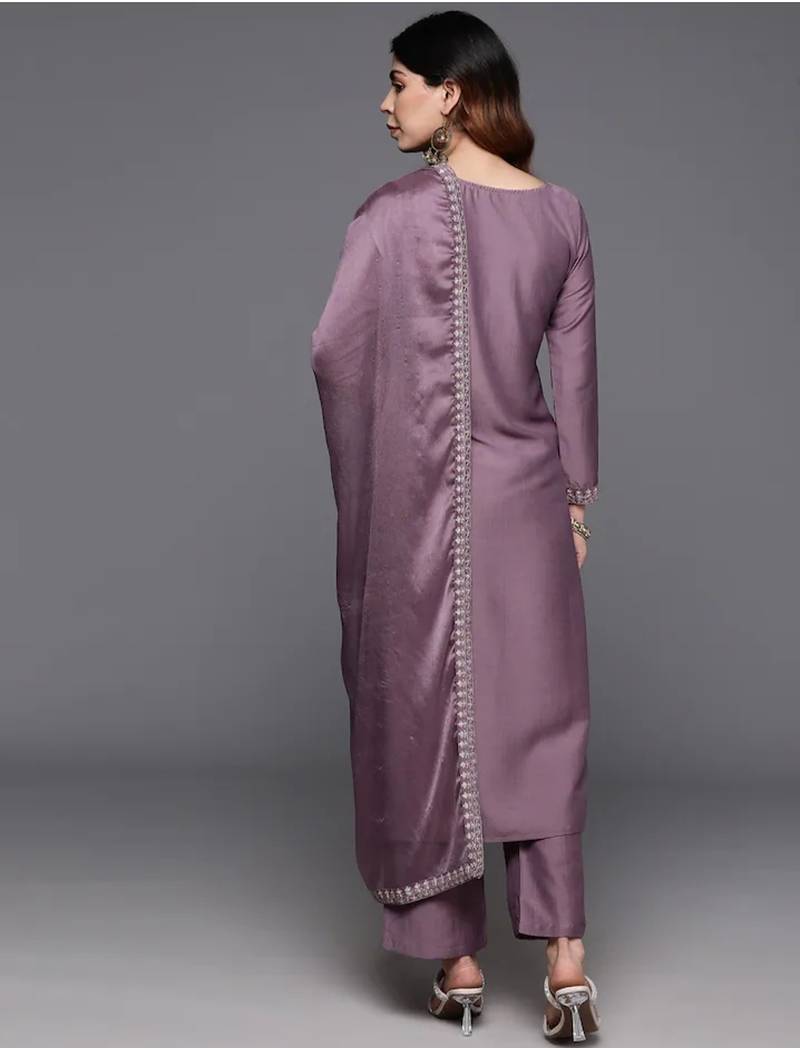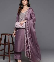 Elegant mauve viscose embroidered kurta set with dupatta for women