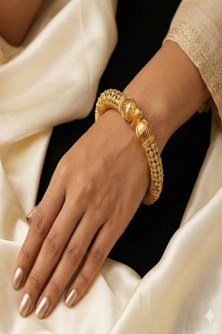 22k gold-plated filigree kada bracelet|traditional indian bridal bangle