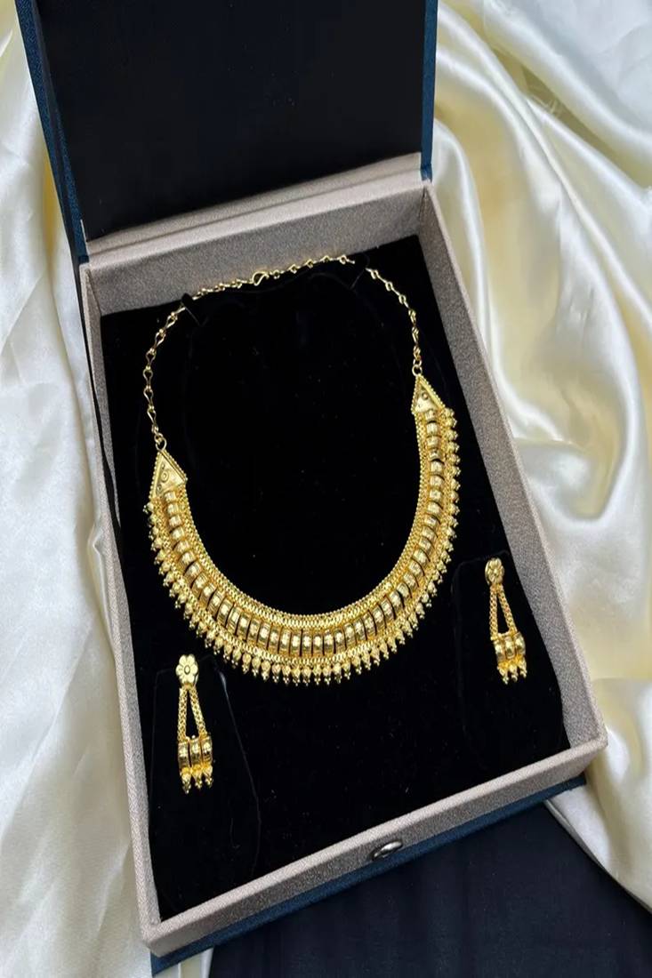 | Product Name | 22k Gold Plated Indian Bridal Choker Necklace Earrings Set: Traditional Temple Jewelry | |