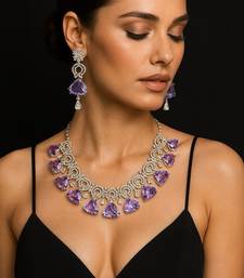 | Product Name | Amethyst Cz Bridal Jewelry Set: Silver Wedding Necklace & Earrings | |