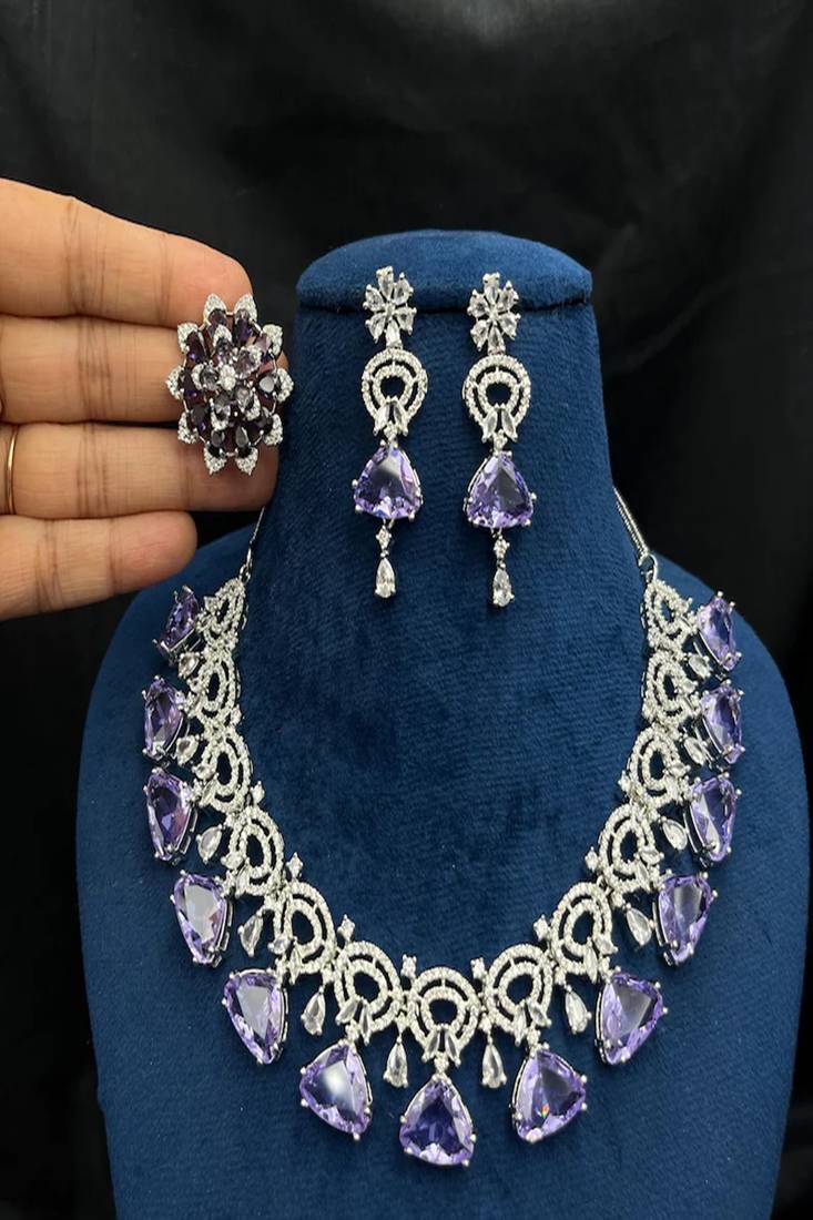 | Product Description | Add Timeless Elegance To Your Special Day With This Stunning Purple Amethyst Inspired Necklace And Earrings Set.