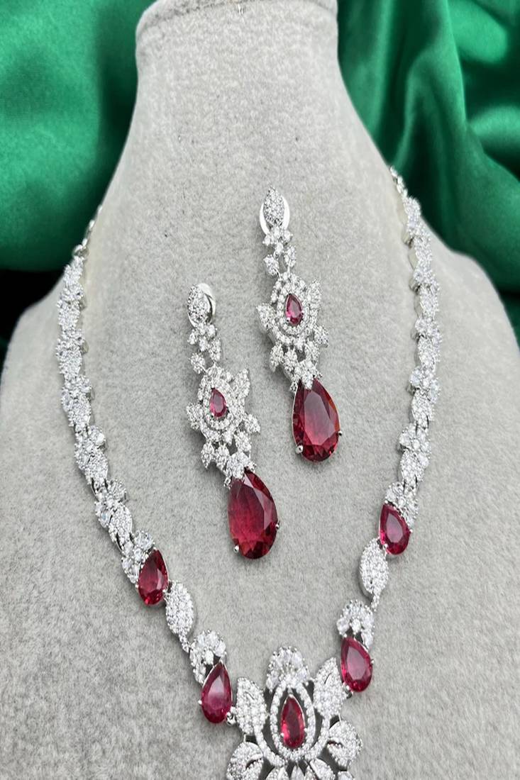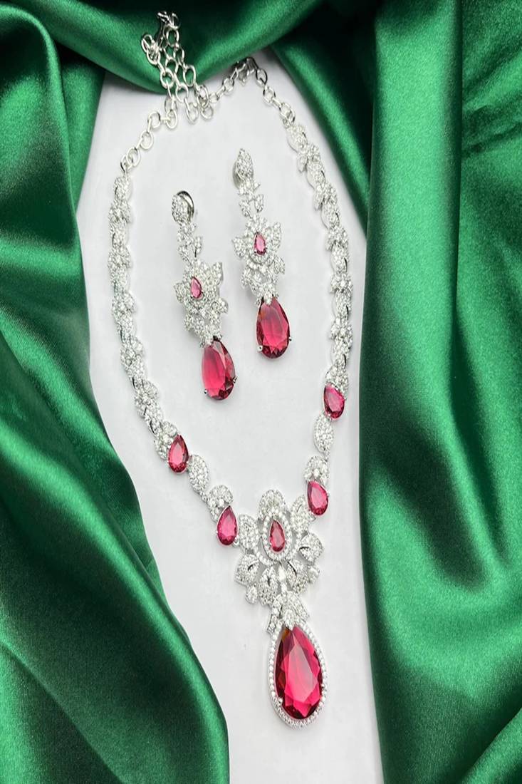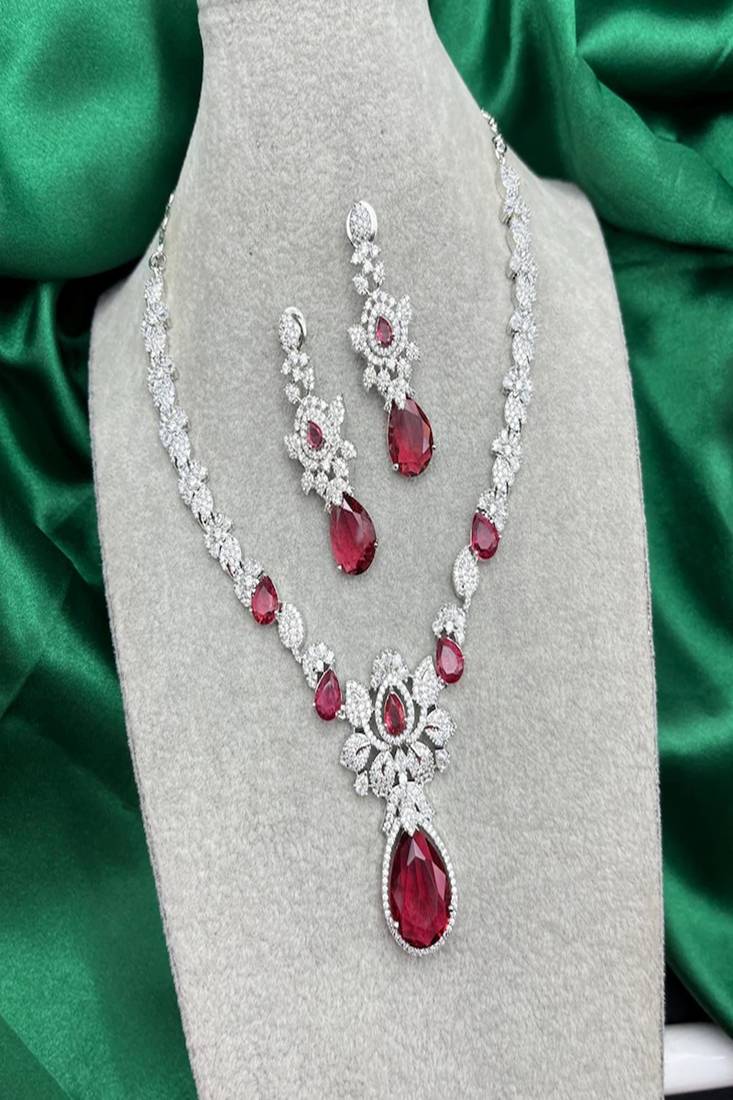 | Product Description | Bridal Ruby Red Necklace And Earring Set | Cz Diamond Choker Set For Women | Wedding Party Jewelry Set | Silver Plated Indian Necklace Set | Statement Jewelry Gift