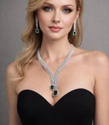 Emerald green ad bridal jewelry set | american diamond necklace & earrings