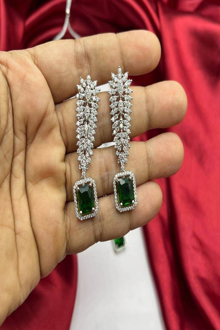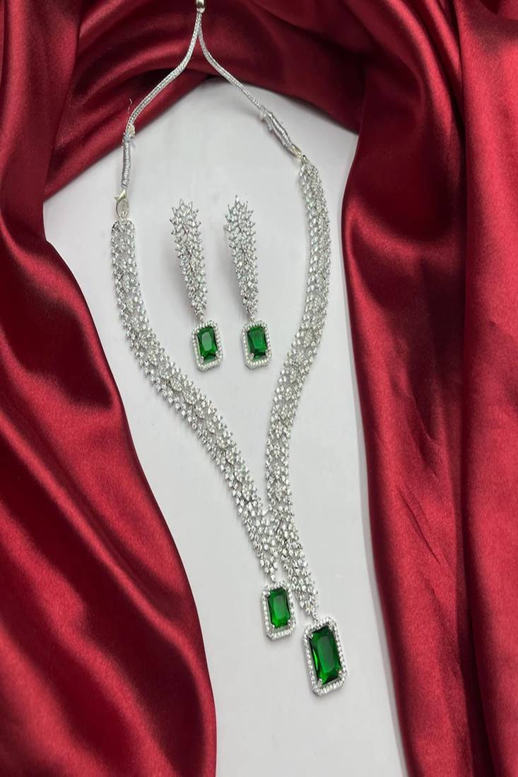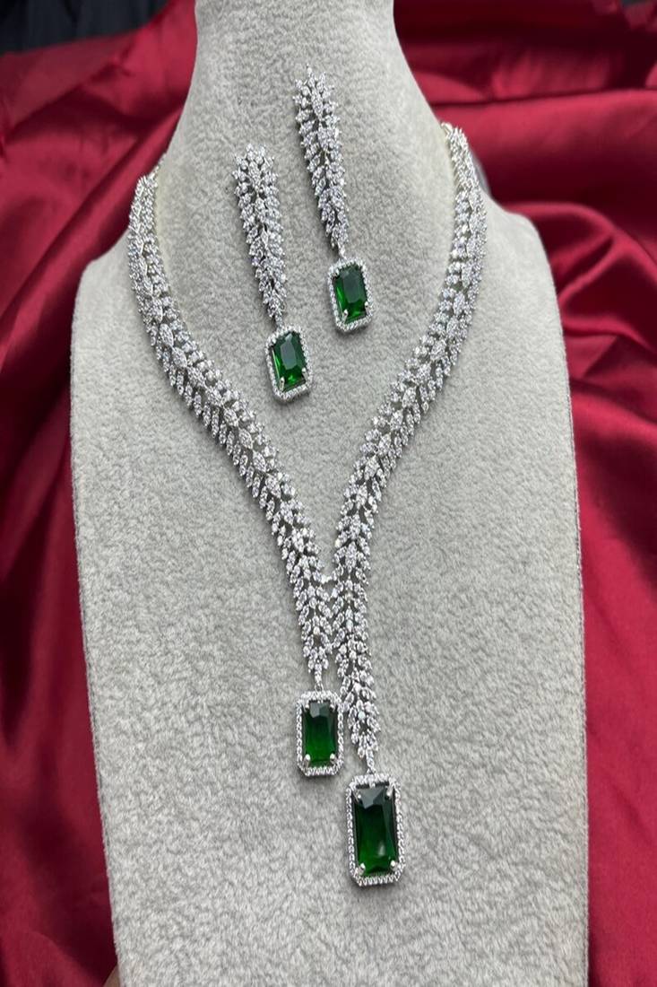 Emerald Green Ad Bridal Jewelry Set | American Diamond Necklace & Earrings