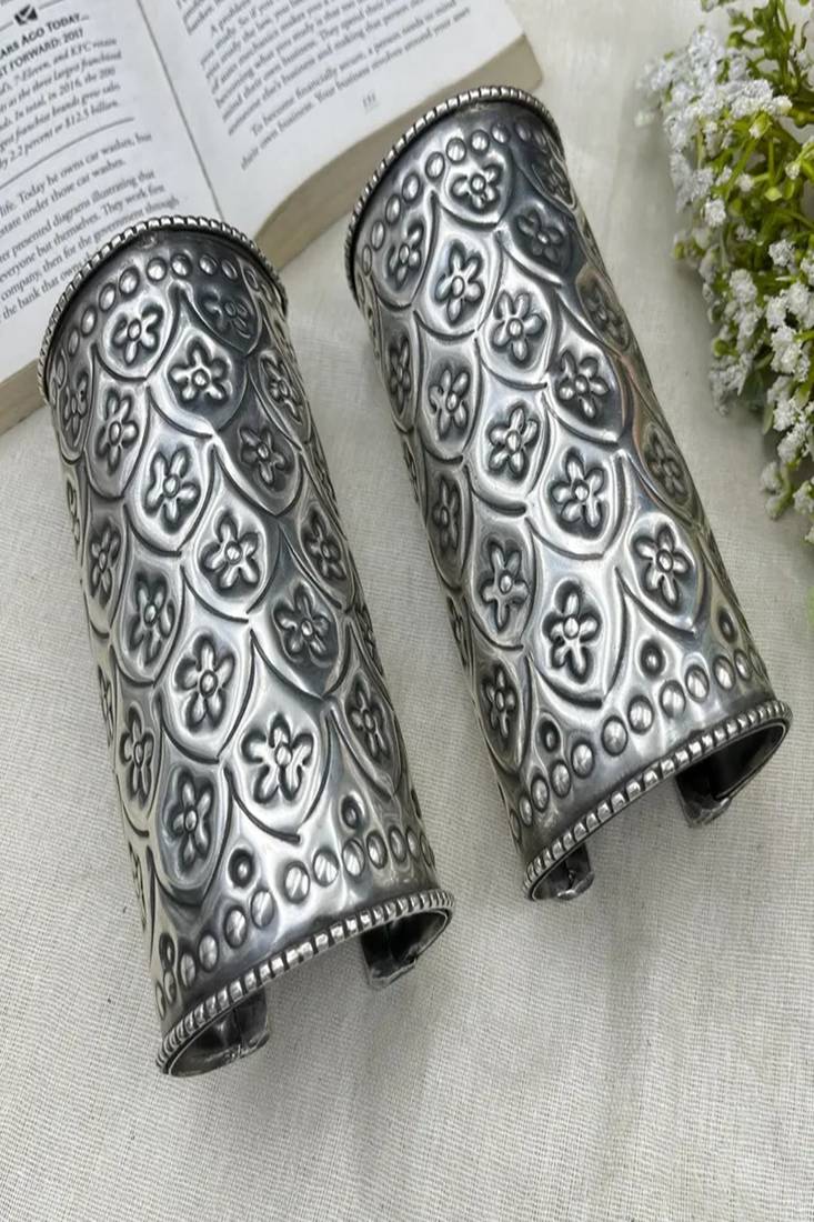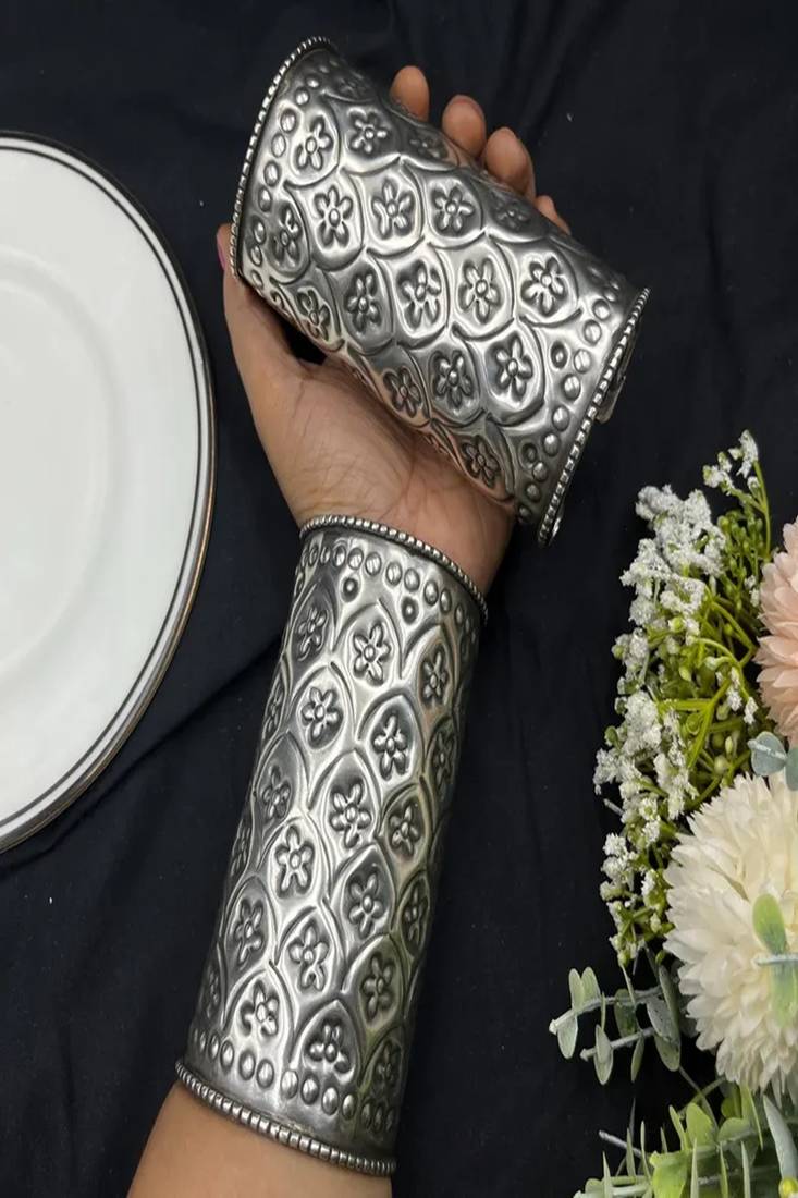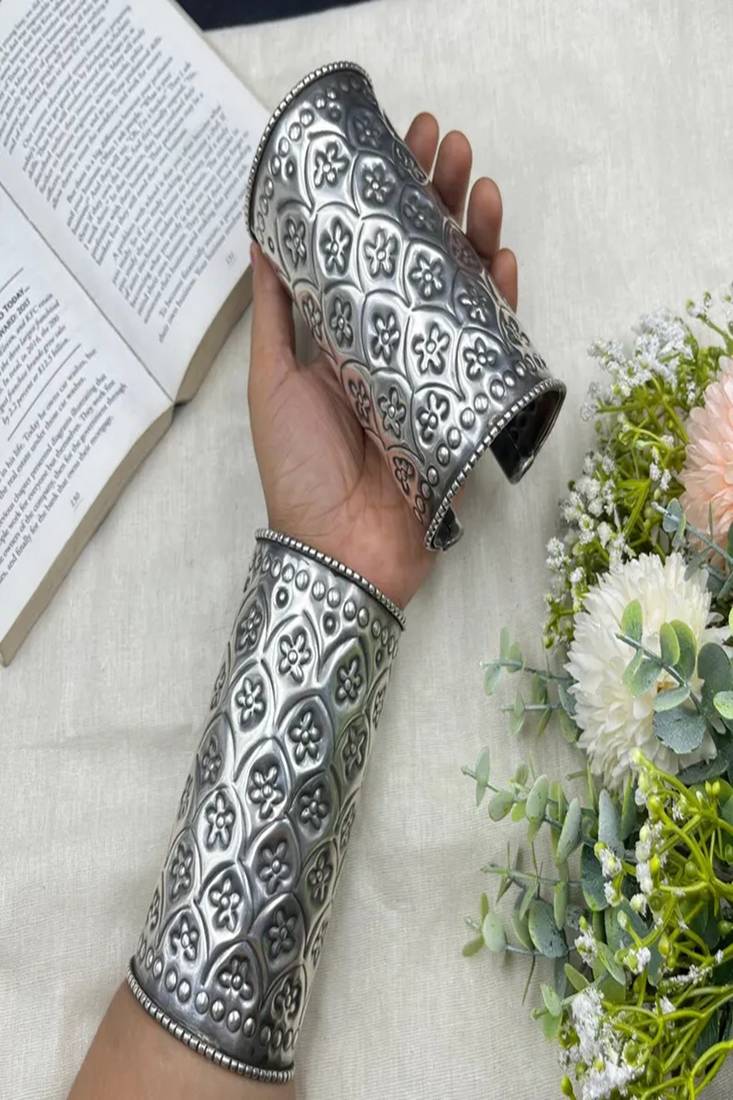 | Product Name | Oxidised Silver Hand Cuff Bracelet (Set Of 2) For Women, Wide Floral Vintage Engraved Statement Cuff | |