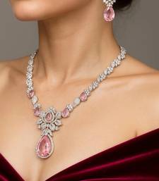 | Product Name | Pink Crystal Teardrop Necklace And Earrings|Silver Bridal Jewelry Set | |