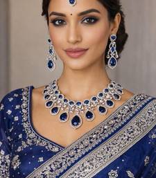 | Product Description | Set Of 3 Pc Wedding Sangeet Bridal Jewelry Set Necklace Earrings Maantika Bangle Ring Indian Pakistani Bridal Jewelry | Statement Choker Set Elevate Your Bridal Look With This Royal Blue Sapphire Bridal Jewelry Set Featuring A Stunning Statement Choker Necklace, Matching Long Earrings, Sparkling Crystal Studded Bangles, And A Bold Cocktail Ring.