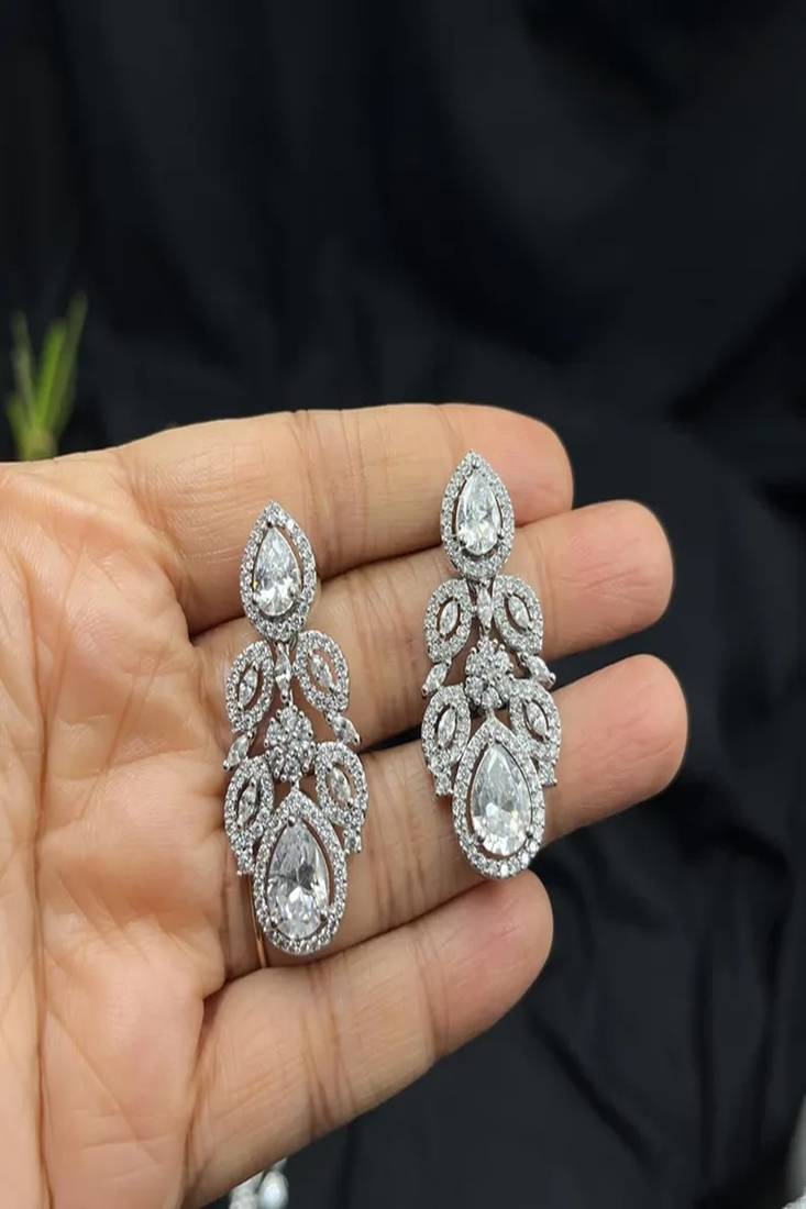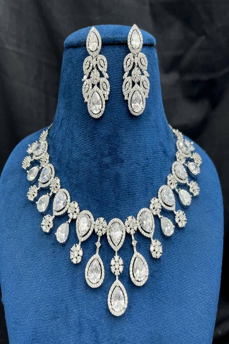 | Product Name | Sparkly Teardrop Cz Bridal Jewelry Set: Silver Wedding Necklace & Earrings | |