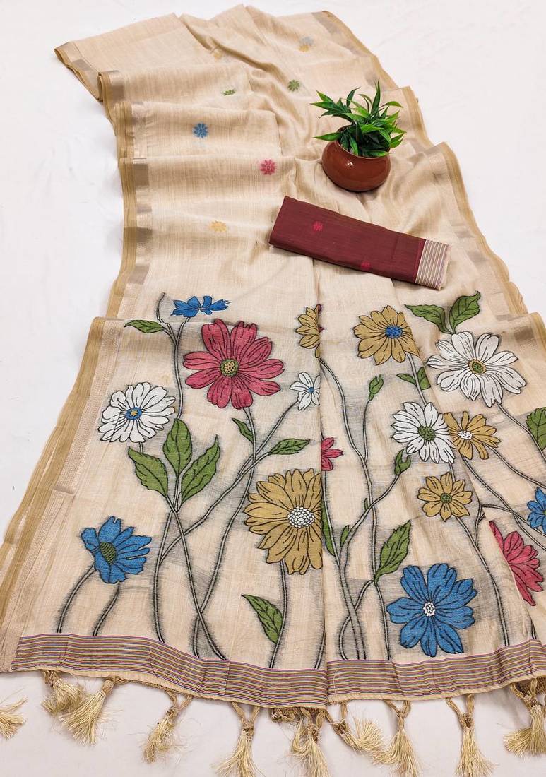 Saree : Color- Cream / Fabric- Pure Cotton