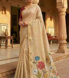 Cream muga cotton meenakari & azarakh pallu saree with contrast blouse