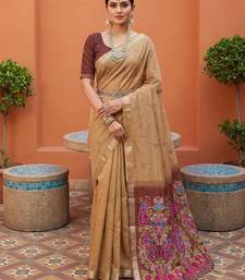 Cream muga cotton meenakari & azarakh pallu saree with contrast blouse