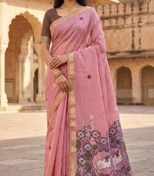 Pink muga cotton meenakari & azarakh pallu saree with contrast blouse
