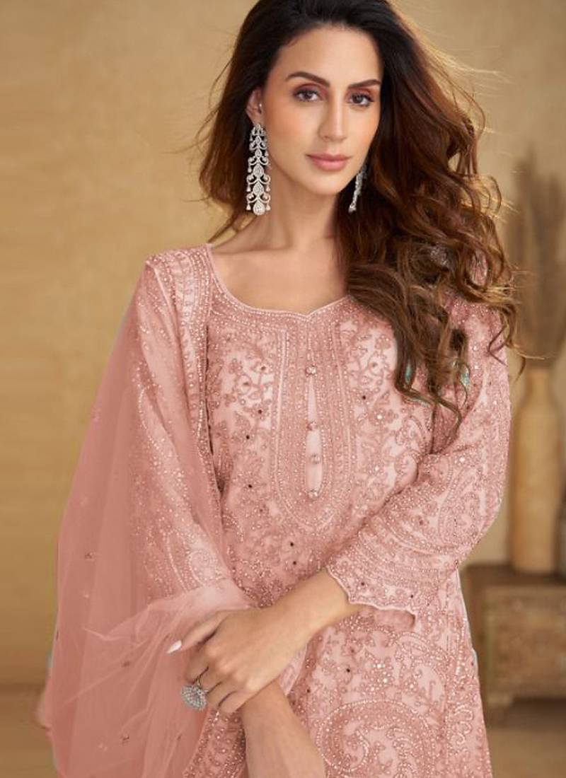| Product Name | Peach Net Embroidered Designer Plazzo Suit | |